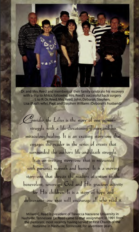 Reed, MillardConsider the Lilies: A Personal story of healing, health, and heaven . Trevecca Press, Trevecca Nazarene University, n.d.